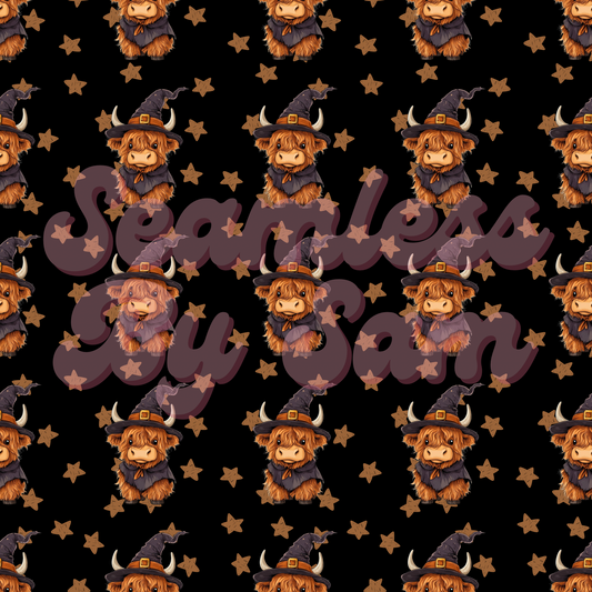 Witchy Highland Cows | Seamless File | Digital Download