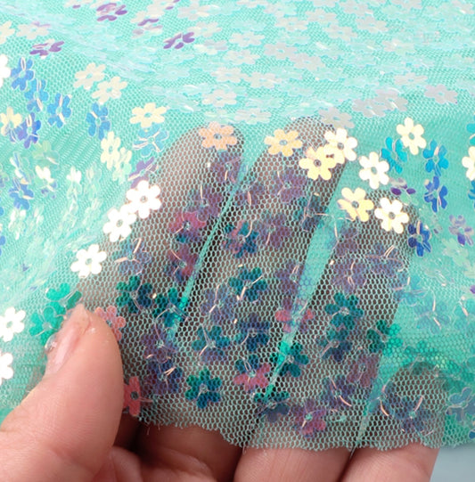 Baby Blue | Floral Sequin Mesh | Ready To Ship