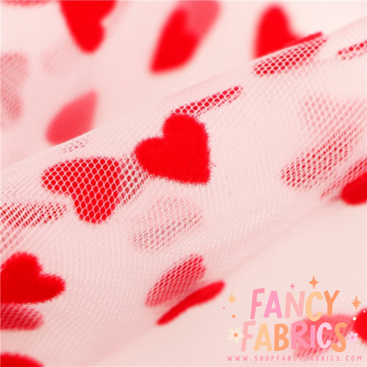 Red Flocked Hearts | Mesh | Ready To Ship