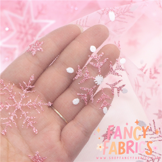 Pink Sparkle Snowflakes | Mesh | Ready To Ship