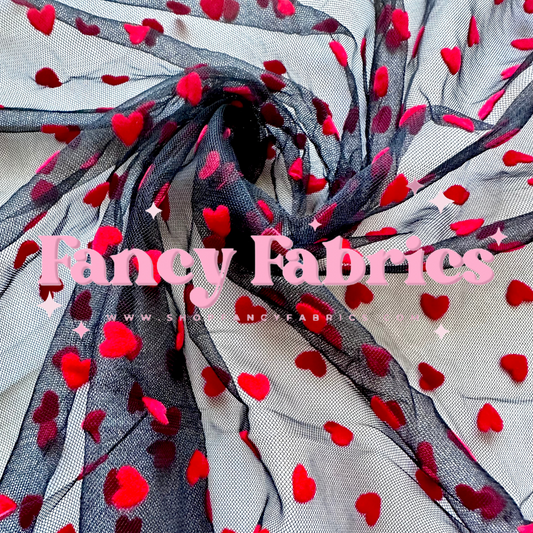 Black Flocked Hearts | Mesh | Ready To Ship