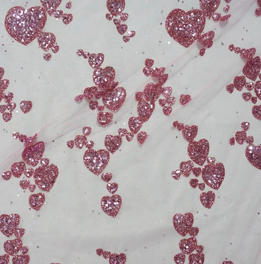 Glitter Hearts | Stretch Mesh | Ready To Ship