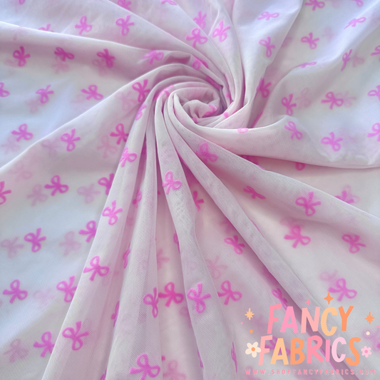Flocked Bows (Hot Pink) | Stretch Mesh | Ready To Ship