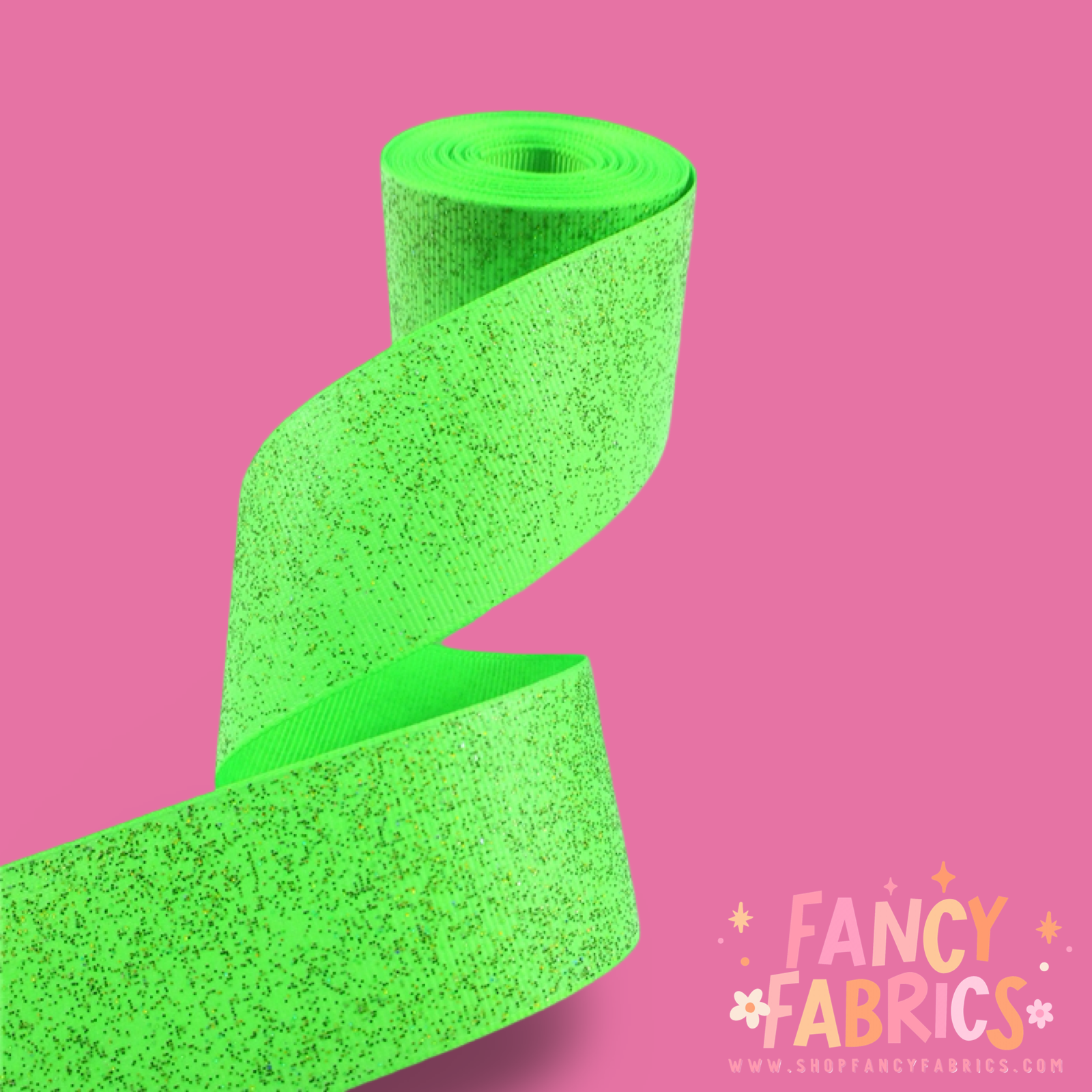 Neon Green | 1.5" Single Sided | Solid Glitter Ribbon | Ready To Ship