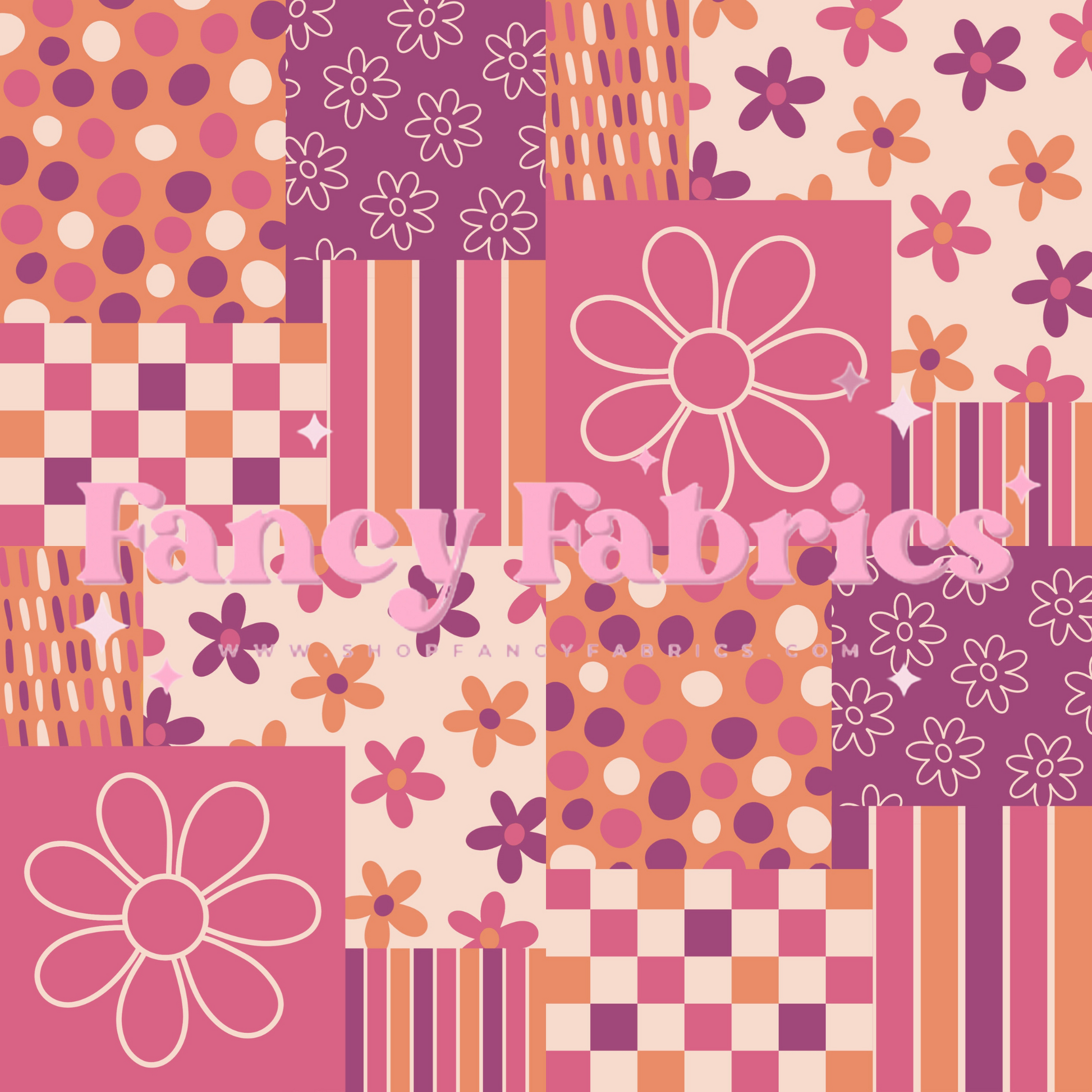 Lauren Liza Designs | Purple Orange Patchwork | PREORDER | By The Yard
